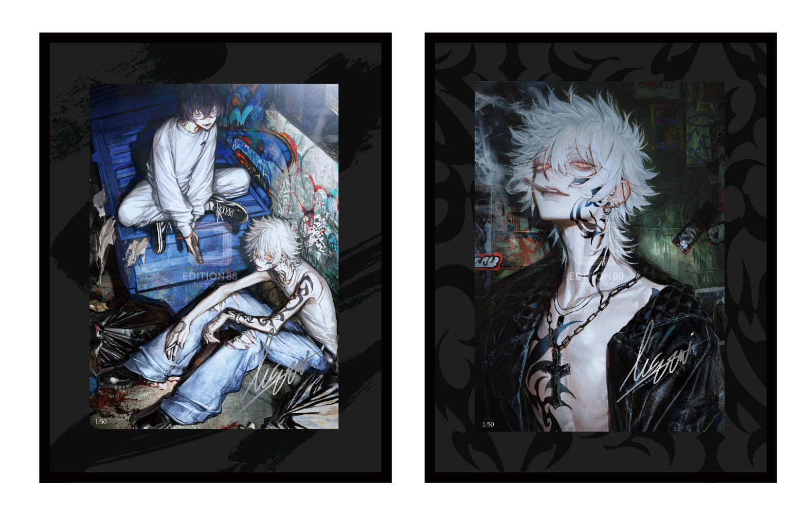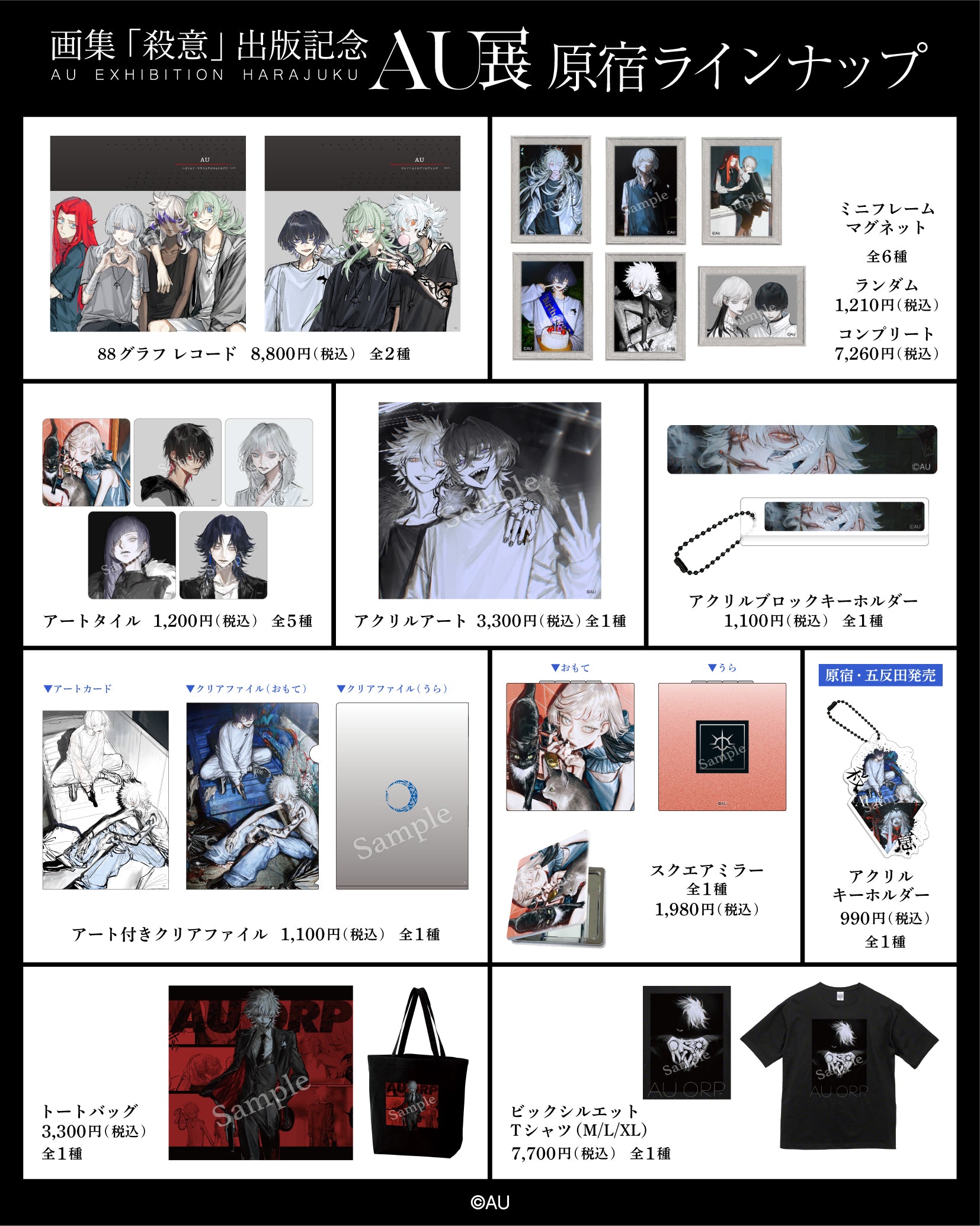 会場では、画集『殺意』の先行販売を行うほか、直筆サイン入りの88グラフ(版画)や記念グッズを販売。さらにAU氏による初のサイン会も開催予定です。
