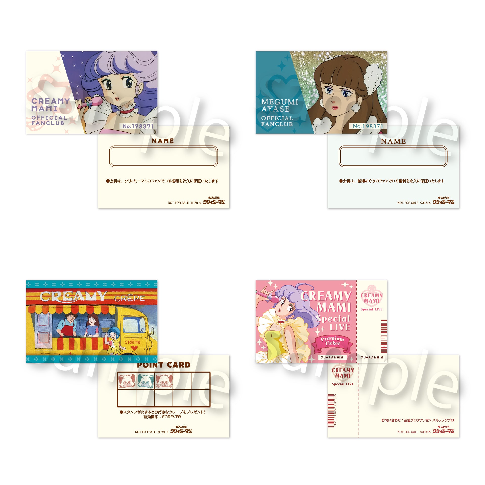 ファンクラブカード(マミ、めぐみ)、クレープ屋ショップカード、ライブチケットをランダムで1枚お渡しいたします。
