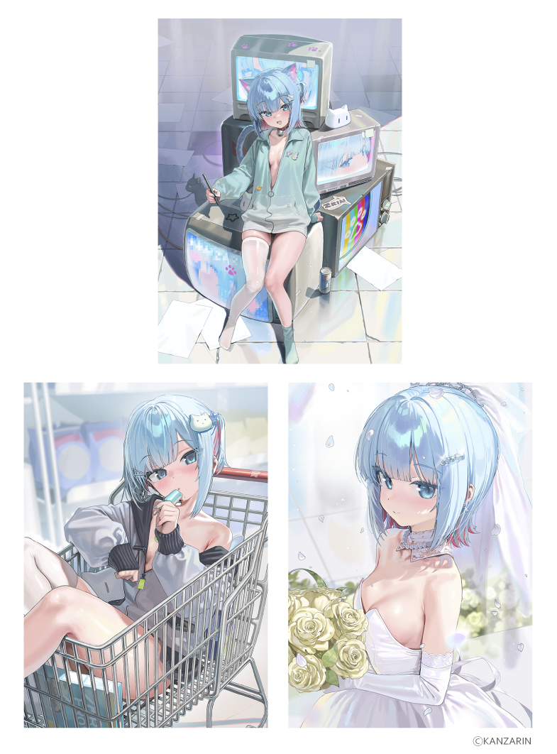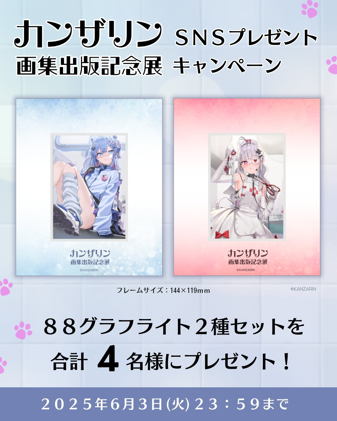 新規描き下ろし3作品をはじめ、オリジナル作品(カンザリン・死ノ宮かんな)を中心に、バーチャルYouTuberのキャラクターイラスト(にじさんじ/ニュイ・ソシエール、ぶいすぽっ!/夜乃くろむ、他)や、「董白伝」などのライトノベルの挿画、ゲームの記念イラストなど、画集収録作品約150点を額装展示、映像投影いたします。
